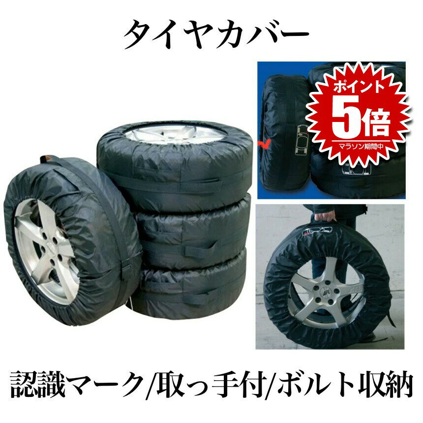 [キャッチコピー]タイヤカバー 4枚セット タイヤを紫外線から守る 13〜19インチ対応 取っ手 ポケット付き 持ち運
