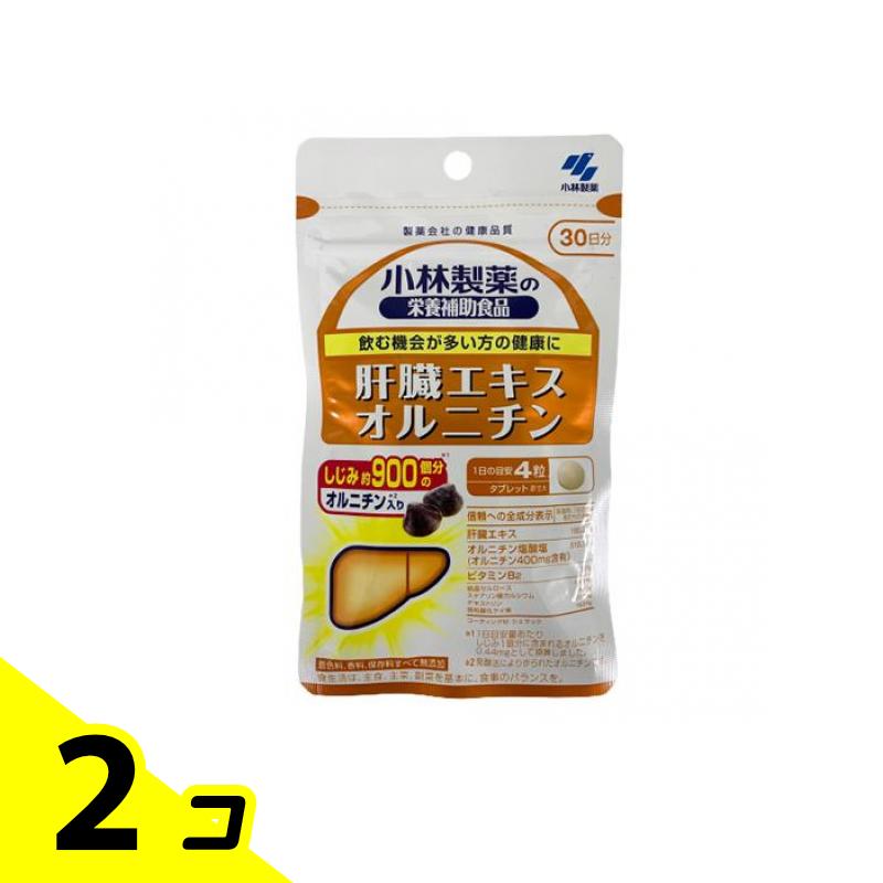 商品価格:2537円 レビュー件数:0 レビュー平均:0 店舗名: カマクラストアージャンルID: 567622< 購入ページを表示> [商品名称]【送料無料!(地域限定)】小林製薬 肝臓エキス オルニチン 30日分 120粒 2個セット[商品説明]【商品名】 小林製薬 肝臓エキス オルニチン 【このような場合に】 飲む機会が多い方の健康に。 【保管上の注意】 直射日光を避け、湿気の少ない涼しい所に保存してください。 【製造販売会社】 小林製薬 【ご使用について】 【お召し上がり方】 1日4粒を目安に、かまずに水またはお湯とともにお召し上がりください。 【使用上の注意】 ●1日の摂取目安量を守ってください。 ●乳幼児・小児の手の届かない所に置いてください。 ●薬を服用中、通院中又は妊娠・授乳中の方は医師にご相談ください。 ●食物アレルギーの方は原材料名をご確認の上、お召し上がりください。 ●体質体調により、まれに体に合わない場合(発疹、胃部不快感など)があります。その際はご使用を中止ください。 ●ビタミンB2の影響で尿が黄色くなることがあります。 ●原材料の特性により色等が変化することがありますが、品質に問題はありません。 【原材料】 ●原材料名 オルニチン塩酸塩(国内製造)、デンプン、肝臓エキス(豚肉を含む)、デキストリン/ステアリン酸カルシウム、微粒酸化ケイ素、シェラック、ビタミンB2 ●栄養成分表示[1日目安量(4粒)あたり] エネルギー 3.8kcal、たんぱく質 0.68g、脂質 0~0.036g、炭水化物 0.24g、食塩相当量 0.00018~0.0071g、カルシウム 0.28~2.8mg、ビタミンB2 1.6mg、オルニチン 400mg ●原材料に含まれるアレルギー物質(28品目中) 豚肉 製品の特徴 ●製薬会社の健康品質 小林製薬の栄養補助食品 肝臓エキス オルニチン ●健康系サプリメント ●飲む機会が多い方の健康に。 ●しじみ約900個分(*1)のオルニチン(*2)入り。 [*1:1日目安量あたり しじみ1個分に含まれるオルニチンを0.44mgとして換算しました。] [*2:発酵法により作られたオルニチンです。] ●タブレットタイプ ●1日の目安:4粒 ●名称:肝臓エキス・オルニチン配合食品 ●健康食品 < 購入ページを表示>