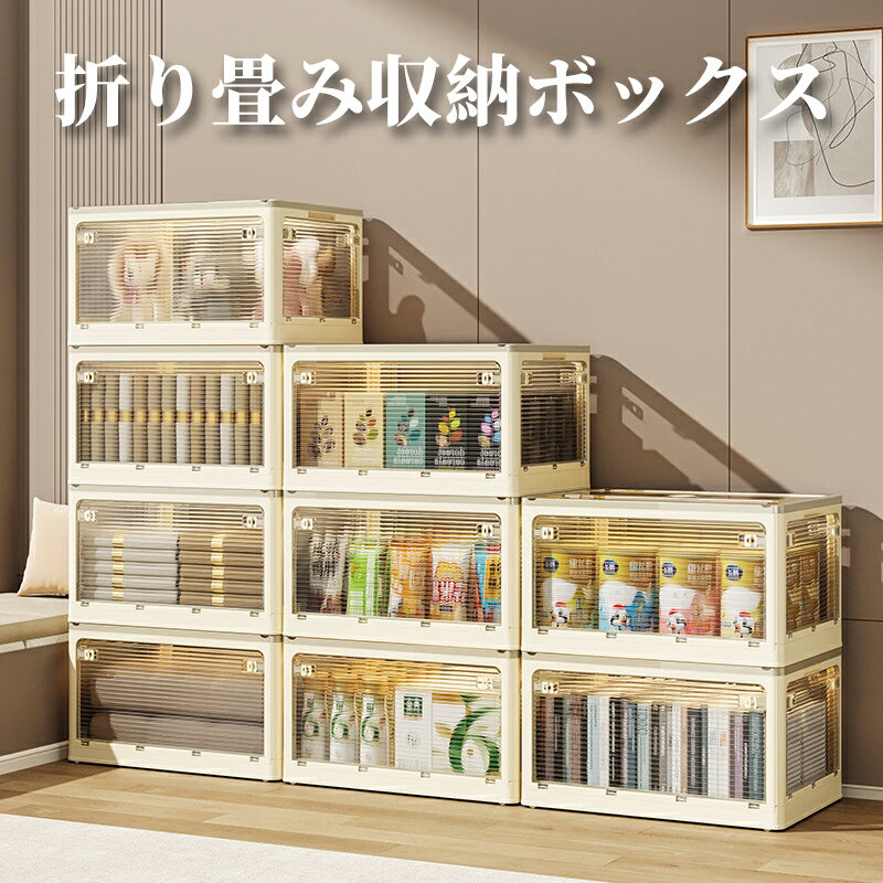 [キャッチコピー]収納ボックス 折りたたみ 扉付き キャスター付き 大型 蓋付き 衣類 布団 ペットボトル クリアボックス 積み重ね 防塵 透明