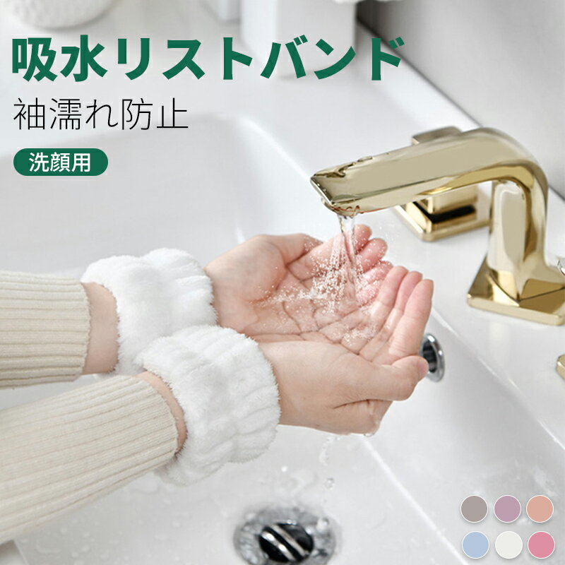 吸水リストバンド 洗顔用 マイクロファイバー 手首バンド 袖濡れ防止 ふ