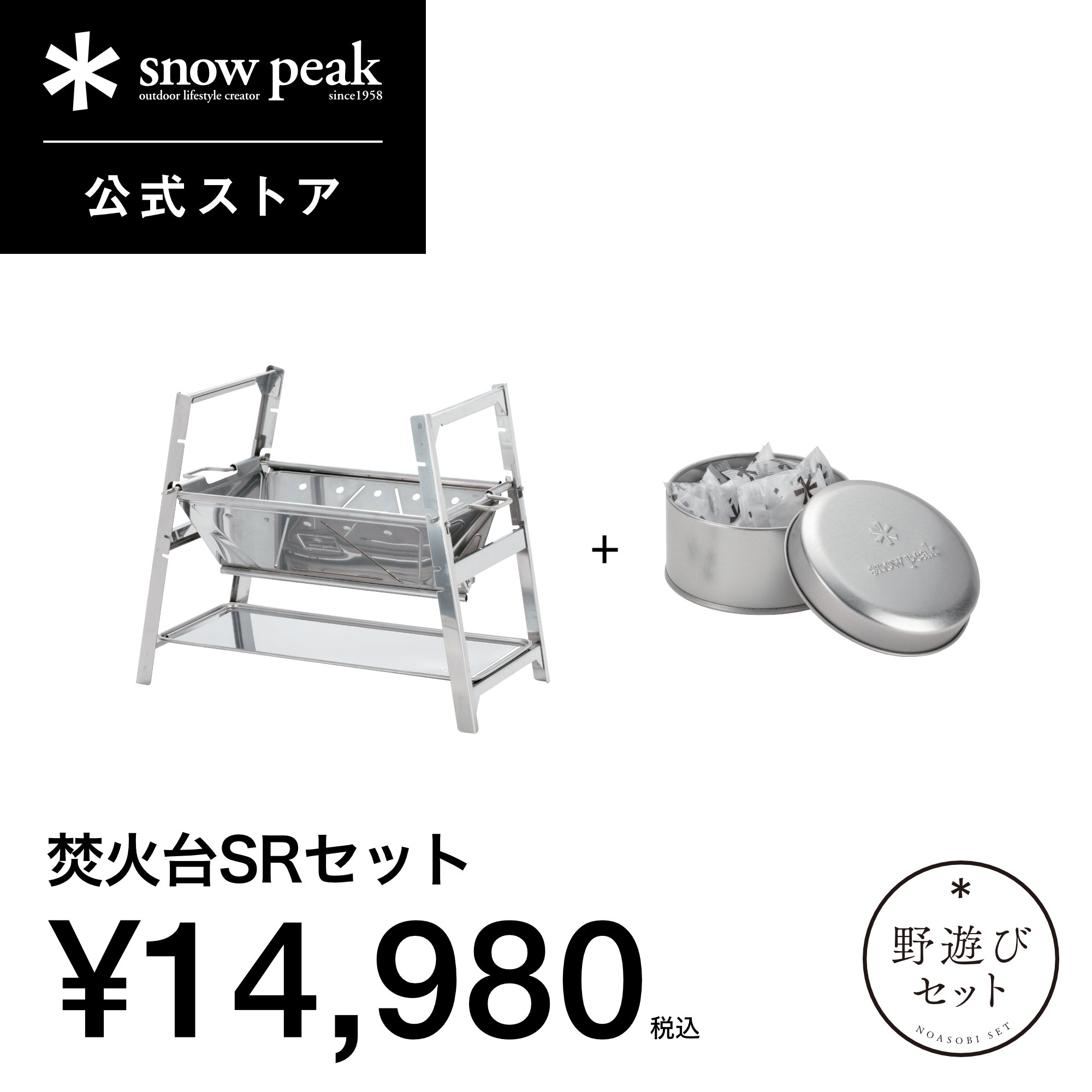 [商品名称]【単品合計23,540円相当】【スノーピーク 公式】snowpeak 野遊びセット 焚火台SRセット FK-398 炭火 お肉 簡易 焚き火台 焚き火 焚火 ギア コンパクト 折りたたみ 着火剤 火起こし 簡単 安全 小分け 持ち運び【永久保証付】
