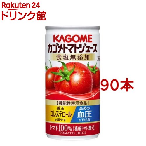 [商品説明]お店TOP>野菜ジュース・フルーツジュース>トマトジュース(無塩)>カゴメトマトジュース 食塩無添加 (30本入×3セット(1本190g))商品区分:機能性表示食品(C139)【カゴメトマトジュース 食塩無添加の商品詳細】●血中コレステロールが気になる方や血圧が高めの方にお勧めのトマトジュース(食塩無添加)です。●リコピンはHDL(善玉)コレステロールを増やす機能が、GABAには血圧が高めの方の血圧を下げる機能があることが報告されています。●トマト100%【保健機能食品表示】・本品にはリコピンとGABAが含まれます。・リコピンには血中HDL(善玉)コレステロールを増やす機能が、GABAには血圧が高めの方の血圧を下げる機能があることが報告されています。・血中コレステロールが気になる方や血圧が高めの方にお勧めです。【基準値に占める割合】機能性関与成分リコピン:15.8-27.1mgGABA:28mg【1日あたりの摂取目安量】1日1本(190g)を目安にお召し上がりください。【品名・名称】トマトジュース(濃縮トマト還元)【カゴメトマトジュース 食塩無添加の原材料】トマト(輸入又は国産(5%未満))【栄養成分】190g当たりエネルギー:36kcal、たんぱく質:1.7g、脂質:0g、炭水化物:8.1g(糖質:6.7g、食物繊維:0.7〜2.1g)、ナトリウム:0〜63mg(食塩相当量:0〜0.17g)、カリウム:150 〜780mg、カルシウム:3〜26mg、リコピン:15.8 〜27.1mg、GABA:28mg【保存方法】直射日光を避けて保存してください。【注意事項】多量に摂取することにより、疾病が治癒したり、より健康が増進できるものではありません。降圧剤等の医薬品を服用している方は医師、薬剤師にご相談ください。本品は、疾病の診断、治療、予防を目的としたものではありません。本品は、事業者の責任において特定の保健の目的が期待できる旨を表示するものとして、消費者庁長官に届出されたものです。ただし、特定保健用食品と異なり、消費者庁長官による個別審査を受けたものではありません。食生活は、主食、主菜、副菜を基本に、食事のバランスが重要です。【原産国】日本【ブランド】トマトジュース PET・缶【発売元、製造元、輸入元又は販売元】カゴメ※説明文は単品の内容です。リニューアルに伴い、パッケージ・内容等予告なく変更する場合がございます。予めご了承ください。・単品JAN:4901306123218カゴメ103-8461 東京都中央区日本橋浜町三丁目21番1号 日本橋浜町Fタワー0120-401-831広告文責:楽天グループ株式会社電話:050-5306-1825[野菜ジュース・フルーツジュース/ブランド:トマトジュース PET・缶/]
