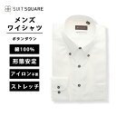 [商品名称]メンズ ワイシャツ 長袖 ノンアイロン ボタンダウンカラー シャドーストライプ コットン100% BASIC ドレスシャツ ホワイト ノーアイロン イージーケア 形態安定 ウォッシャブル ストレッチ ノンアイロン 白系 綿100% 伸びる 洗える ノータイ Yシャツ スーツスクエア xyz