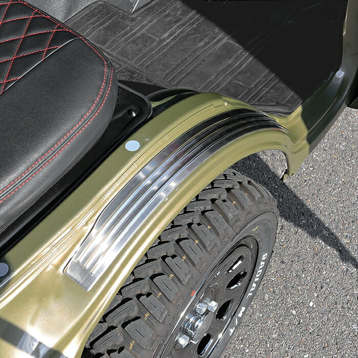 [商品説明]商品詳細 スバル サンバー トラック 500系 500系 フロント フェンダー プロテクター 左右セット 乗り降りの際に傷付きやすいフェンダー部分をカバー。 ドレスアップと傷防止を両立した製品です。 ■適合車種 ・メーカー:スバル ・車種:サンバートラック ・年式:H26.9〜 ・型式:S500J S510J ※グランドキャブ装着可能 ※OEM車も装着可能 ■カラー:ヘアライン シルバー ■材質:ステンレス製 装着は裏面の両面テープで張り付けるだけの簡単装着です。 装着前に必ず仮合わせ及び脱脂作業を行ってください。 不十分な場合剥がれの原因となる場合が御座います。 両面テープが足りない場合はお客様にてご用意お願いします。 保護フィルムが貼ってありますので剥がしてご使用ください。 ※お取り付けに関しますサポートは行っておりません。 ※取り付け方法に関しましては専門業者様へご依頼ください。 ※形状、仕様は予告なく変更される場合がございますので、あらかじめご了承ください。 ※いかなる場合においても、取り付け工賃など商品代金以外の保証を致しかねます。 ※取り付け作業前に、「商品に不良箇所がないか」「ご注文内容と相違がないか」を 必ずご確認ください。 取り付け作業をされた商品は返品対象外となります。 又、小傷擦り傷などはクレーム対象外となりますので予めご了承お願いします。 新品・未使用品ですが社外品になりますので多少の輸送傷等がある場合が御座います。 ご了承お願い致します。 ※モニター環境により実際の商品と色味が違う場合がございます。予めご了承ください。 配送サイズ 佐川急便 【送料について】 配送サイズ【・100サイズ】 ※送料に関しては画像をご覧ください。 発送後の住所・発送先変更は出来ませんので予めご了承お願いします。 ※沖縄・離島は別途お問い合わせください。500系 スバル サンバー トラック フロント フェンダー プロテクター 左右セット ヘアライン シルバー 新品 軽トラ 内装 アーチ ガード