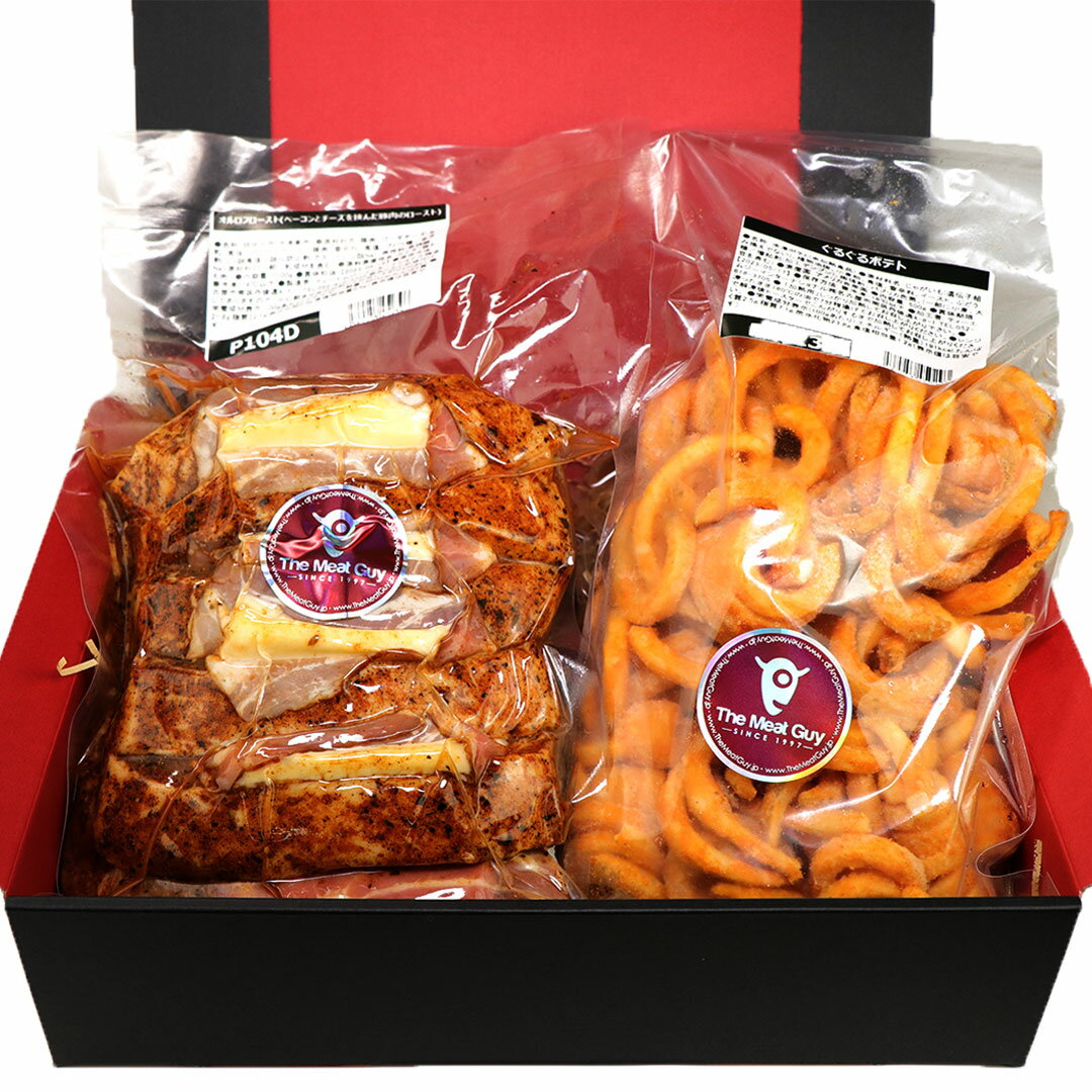 [商品説明]商品情報 商品名 ロティ・オルロフとカーリーフライポテトのギフトボックス 合計1.6kg 名称 お肉と冷凍ポテトの詰め合わせ 内容量 ・ロティ・オルロフ 1.1kg ・カーリーフライポテト 500g 原産国・原材料 各商品ページをご確認ください 賞味期限 別途商品ラベルに記載 保存方法 要冷凍-18℃以下 加工者/製造者 ティーエムジーインターナショナル(株)名古屋市南区丹後通4-8-1 TEL:052-618-3705 配送形態 冷凍 *仕入や在庫状況によりパッケージ、規格などが多少違う場合がございます *内容量については個体差がありますので予めご了承ください 本商品に含まれるアレルギー物質(特定原材料7品目) 卵乳小麦落花生そばえびかに ○ ○ ○ - - - - 「○」のついているものは含まれます。 ※ロティ・オルロフに「乳」、カーリーフライポテトに「卵・乳・小麦」が含まれます。 ギフトボックスにのしをお付けする事ができます。ご要望の方はコメント欄にご記入ください。▼セット内容▼ ロティ・オルロフ 1.1kg カーリーポテト 500g 商品説明 一度は食べていただきたいミートガイオリジナルの「ロティ・オルロフ」!サイドディッシュ用にカーリーフライポテトをセットにしてギフトボックスに詰め込みました。 ▼ロティ・オルロフ 1.1kg 豚ロースにオーストリア産のスモークベーコンとホワイトチェダーチーズを挟み、ミートガイのオリジナルスパイスをまぶしました。 商品一つ一つを名古屋の自社工場にて手作りしています。既に味付し冷凍の状態でお届けしますので、解凍後、オーブンで焼くだけでお召し上がり頂けます。 パーティーに、サンデーローストに如何でしょうか。5~6人前のボリュームがありますので、盛り上がる事間違いなし! "Bon appetit!"「たくさん召し上がれ♪」 豚ロース1個 (1kg) 既にミートガイのオリジナルスパイスで味付しております。 チーズ(お肉に挟んであります) (100g) ベーコン(お肉に挟んであります) (50g) 合計重 : 1.1kg 1個=(タテ約19cm、ヨコ約14cm、高さ約8cm) ※個体差がある為、実際にお届けする商品とは大きさが異なる場合がございます。予めご了承ください。 ▼カーリーフライポテト 500g ぐるぐるカット(カーリーフライ)ポテト。螺旋状(立て巻きパーマのような形)にカットされたポテト。 レストランで食べたことがあるという方もいるかも。薄っすら衣をつけたバージョンで、カリッときつね色に揚がります。500g入り。 やみつきになる味付けでついつい手が伸びてしまいます。 ▼内容量 ・ロティ・オルロフ 1.1kg ・カーリーフライポテト 500g ギフトボックス 召し上がり方 ▼ロティ・オルロフ 1.1kg 解凍時間は冷蔵庫で1日半~位かかります。 お肉は必ずローストする前に常温に戻して、180℃に予熱したオーブンで約50分程ローストします。火の通り具合はメーカーによって異なりますので時々チェックして見守ってください。 オーブンから取り出して直ぐにスライスせず、アルミホイルなどを被せて10分お待ち頂けると肉汁の流出を最小限に抑えることができます!10分経ったらスライスして出来上がり♪焼いた時に溶け出したチーズはお肉の上にかけてお召し上がりください! このローストは少し大きめのオーブンなら入ります。(タテ約19cm、ヨコ約14cm、高さ約8cm)直火をさけて蓋をしてグリルでも焼けます!どの焼き方でも肉温度計でお肉の中の温度が65℃に達したかどうかを確認するのをおすすめします。 ▼カーリーフライポテト 500g 【フライヤーをご利用になる場合】 冷凍庫から出したポテトを170-175度の油で約3~4分あげたら完成! ※油・ポテトの量によっても出来上がり時間は異なりますので、揚げ時間はお好みで調節してください。 【オーブンをご利用になる場合】 クッキングシートを敷いた天板に、冷凍庫から出したポテトを重ならないように置きます。 200度のオーブンで約20分焼きます。 ※オーブンの仕様・ポテトの量によって焼き時間は前後いたしますので、お好みで調節してください。
