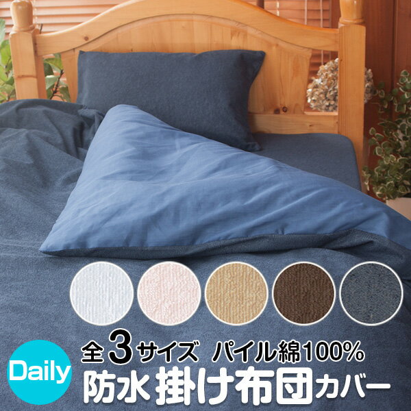 防水掛け布団カバー 綿パイル100% デイリー 掛け布団カバー 防水シー
