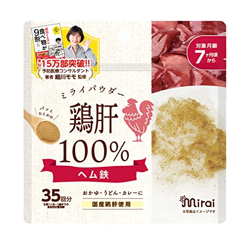 商品価格:1382円 レビュー件数:0 レビュー平均:0 店舗名: LarutanジャンルID: 201049< 購入ページを表示> [商品名称]ミライパウダー 鶏肝 35g 送料無料[商品説明]白/-/-・FlavorName:レバー・パッケージ個数:1・パッとひとかけ!時短・らくらく離乳食♪商品紹介 ●パッとひとかけ! 時短・らくらく離乳食♪ ●女性に特に足りないと言われるミネラルヘム鉄! パッとひとかけで簡単解決! 選別した原材料で旨味まで実現! ●ミライパウダー(鶏肝)は国産の鶏肝を使用しています。 ●加熱済で下処理不要! ●時短らくらく離乳食/家族みんなの食事まで。 ●予防医療コンサルタント細川モモさん監修の商品です。 ★安心してお召しいただくためのこだわりいっぱい。乳児用規格適用食品 ・国産鶏肝100% 厳選された国産の鶏肝だけを使用。 ・安心 加熱済だから鶏肝見た目が苦手な方も。 ・下処理不要、時短! ・不足しやすいミネラル、「ヘム鉄」。 鉄が必要な妊婦、授乳婦、お子さまとともに血液をつくる力に必要。 【名称】 鶏肝粉末 【対象年齢】 7ヵ月頃~ 原材料・成分 【原材料】 鶏肝(国産) 【栄養成分(1袋35gあたり)】 エネルギー・・・172kcaL タンパク質・・・25g 脂質・・・7g 炭水化物・・・0g 食塩相当量・・・0.1g 鉄・・・10.6mg ビタミンA・・・9800μg 使用方法 【お召し上がり方】 お好みの料理にふりかけてください。 ★調理のポイント 加熱不要ですが、においが気になる方は料理に混ぜて加熱することをおすすめします。【アレルギー物質】 鶏肉(28品目中) 安全警告 【使用上の注意】 ・本品は摂取上限が定められているビタミンAが含まれています。目安量をご確認の上ご使用ください。 ・原材料を確認の上、食品アレルギーがご心配な方はお控えください。 ・開封後は、なるべくお早めにお召し上がりください。 ・品質保持のため、 袋の中に脱酸素剤を封入しております。食品ではありませんので、ご注意ください。 ・本製品は、小麦、卵、乳、落花生、アーモンド、いか、オレンジ、カシューナッツ、くるみ、ごま、大豆、バナナ、豚肉、もも、りんご、ゼラチンを含む製品と共通の設備で製造しています。※配送に関しての重要事項※・ギフト梱包、のし等は不可となります。・お客様都合で商品発送作業以降のキャンセル不可となります。・弊社提携先倉庫からの発送商品は配送システムを一元管理しており、輸送箱に異なるサイトのロゴが記載されている場合がございます。その為、配送間違いと思われる場合もございますがお受け取りいただきます様お願い致します。※不在時の場合も同様の不在連絡票(再配達)となります。・領収書の発行はシステム上ご注文履歴からお客様ご自身での発行となります。※その他重要事項※商品はメーカーリニューアルが行われた場合、順次パッケージ変更品等でのお届けとなります。商品画像が旧パッケージ等の場合がございますがご了承頂きますようお願い申し上げます。 < 購入ページを表示>