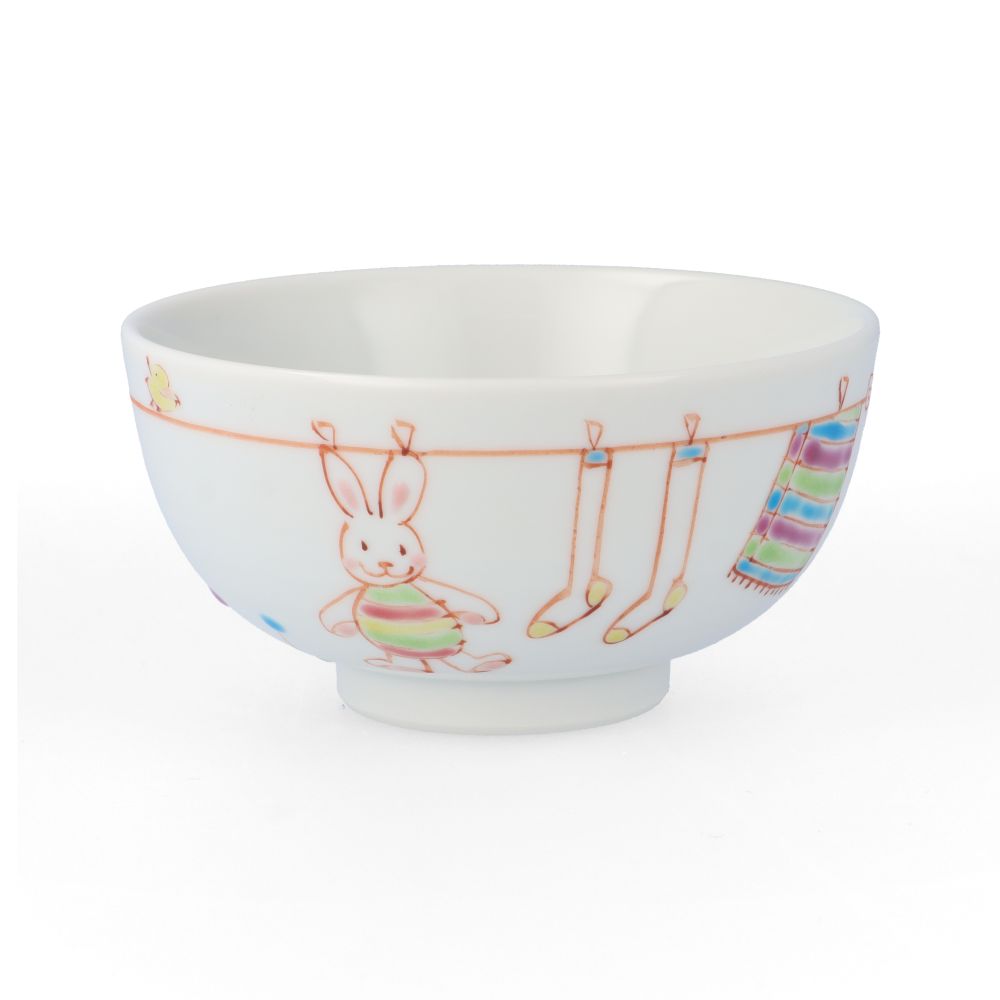 [商品名称]九谷焼 小飯碗 プチ飯碗 洗濯物 / 色絵遊 | お茶碗 キッズ茶碗 径9.5cm