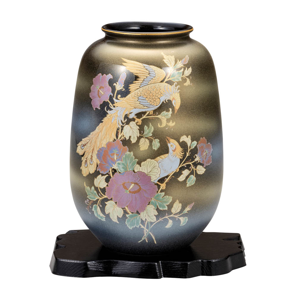 [商品名称]九谷焼 8号花瓶 天目鳳凰(台付) <送料無料 花瓶 花器 人気 ギフト 贈り物 結婚祝い/内祝い/お祝い/> 木箱入り
