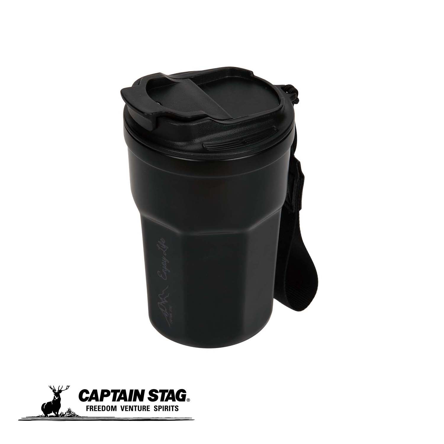 [商品名称]【12月4日20時〜楽天スーパーSALE!】 キャプテンスタッグ アウトドア 真空二重 蓋付き タンブラー 350ml 保温 保冷 コップ マグカップ フリップリッドタンブラー ストラップ モンテ ブラック UE-3612 防災グッズ 防災用品 熱中症対策