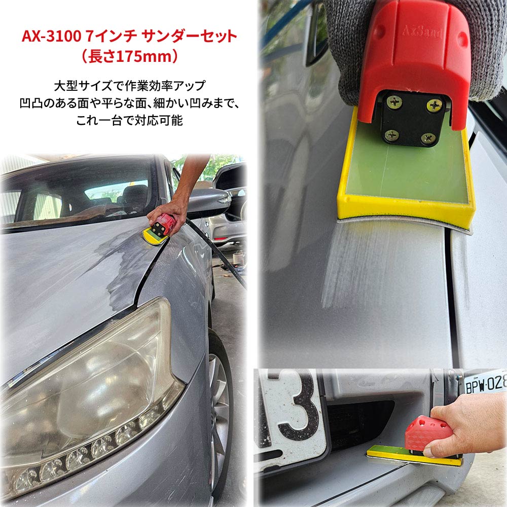 [商品説明]商品情報 海外購入の注意事項 1.個人情報のお取扱いについて 当店は、インターネット通販で取得したお客様の個人情報を、当店からのお知らせや配送業者への委託にのみ使用し、無断で第三者に譲渡・漏洩しません。安心してご利用ください。ただし、法的機関からの提示を求められた場合はこの限りではありません。 2.個人輸入について ● 当店の商品は「個人輸入」として、台湾から直接お客様にお届けします。配送手続きのため、台湾の事業者にお客様の注文情報が提供されますので、同意の上でご注文ください。個人輸入の商品は「個人使用・個人消費」が前提で、第三者への譲渡・転売は禁止です。 ● 当店の商品に関する注意事項として、楽天市場の税金についてお知らせいたします。詳細は以下のリンクをご参照ください:税金に関するお知らせ ・商品価格・保険料・送料等の合計金額が16,666円以下の場合は通常、関税や消費税は免除されますが、16,666円を超える場合は消費税(10%)および関税が課税される可能性があります。 ・課税の有無は税関の判断によるため、当店では事前に確定することはできません。商品の種類や税関の判断によって異なるため、正確な金額を予想することは難しいです。 3.キャンセル・返品・交換について ● お客様都合によるキャンセル: ・ご注文から30分以内は、理由の有無を問わずキャンセル可能です。 ・ただし、以下の場合はキャンセルできません: 楽天会員登録を利用していない注文 予約購入/定期購入/頒布会の注文 配送日時指定で最短お届け日を指定している注文 ● 特別なご事情によるキャンセル: ご注文後24時間以内にご連絡ください。24時間を過ぎるとキャンセルが難しくなります。 ・ 商品到着後は中身をご確認ください。特に不具合がある場合は、必ず写真を撮ってください。 ・お客様のご都合による返品・交換は承れません。 4.配送について ご注文確定後(お支払いが完了し、システムにてご注文が確定された後)、7営業日以内に発送いたします。 発送完了後、通常1週間程度でお届け先に到着する見込みです。 したがって、ご注文確定からお届けまでの期間は、通常15日前後となります。AX-3100ストレートサンダー + 7インチ研磨パッドセット(長さ175mm) 製品紹介 ◆車のボディのあらゆる面に対応:曲面や凹凸面、平らな面、細かい凹みまでこれ一台で研磨可能 ◆さらに多くの形状や工具の説明はこちらで確認可能 ◆しっかりメンテナンスで安心の5年保証(シリンダーとピストンが錆びていない場合) ◆防水ブリキ缶パッケージで収納・持ち運びも簡単、破れにくく長持ち ◆即使用可能なサンドペーパー付きですぐに研磨可能 製品内容 ◆長さ175mm/7インチ ◆外装:段ボール/内装:缶ボックス ◆Axsand_04-K1:AX-3100ストレートサンダー + 凹凸平6種パッド + スポンジソフトパッド + 手作業用研磨ブロック + サンドペーパー100枚(粗・細 各50枚) ◆Axsand_04-K2:凹凸平6種パッド + スポンジソフトパッド + 手作業用研磨ブロック + サンドペーパー150枚(粗・中・細 各50枚)