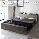 [商品名称]ベッド シングル 国産ポケットコイルマットレス付 ハード グレージュ ロータイプ 低床 宮付き 棚付き 宮棚付 ヘッドボード付 コンセント付 照明付 すのこ ベット すのこベッド ローベッド ベッドフレーム フロアベッド 寝具