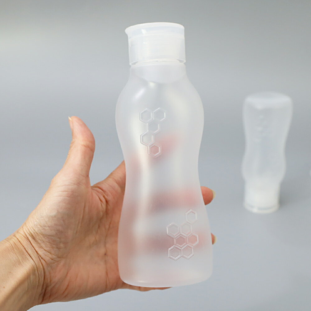 はちみつボトル 容器 下向き自立ボトル 型押しザイン入り 蓋つき 360