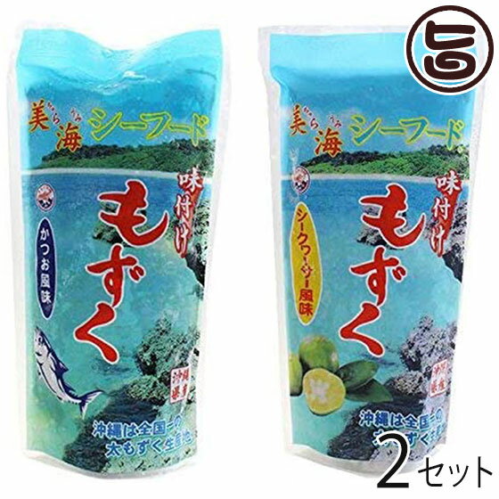 [商品名称]丸昇物産 沖縄県産 味付け もずく かつお シークヮーサー風味 300g×各2P 沖縄 人気 土産 海藻 モズク 美海 ちゅらうみ シーフード