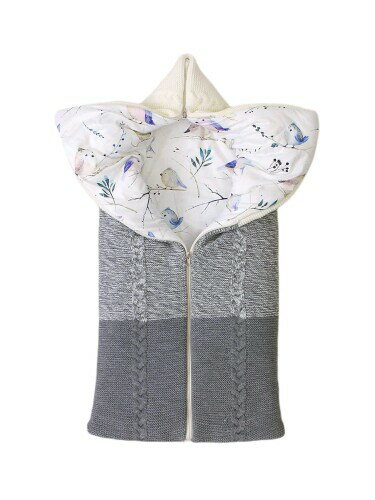 [商品名称]ベビー ブランケット 編み込みニット ジッパーフロント フード付き 寝具 寝袋 秋冬 アクリル グレー