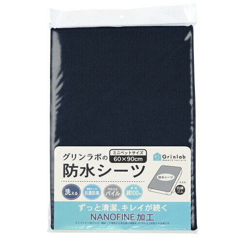 [商品名称](グリンラボ) 防水シーツ おねしょシーツ 部分使い用 綿100% パイル 抗菌 制菌 防臭 ナノファイン 加工 四隅ゴム付き 60x90cm ネイビー