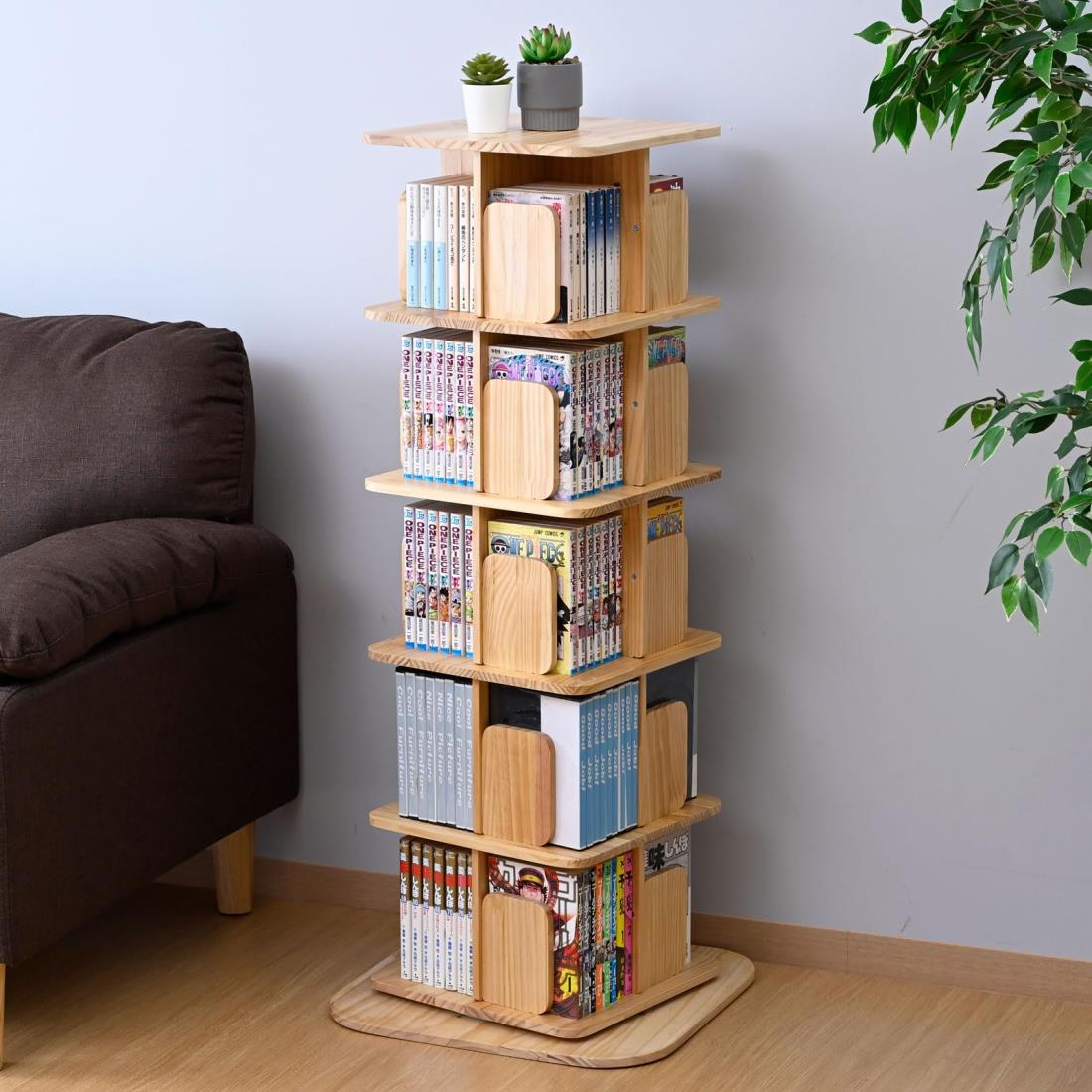 山善 本棚 回転式本棚 5段 角型 コミックラック 360度回転 大容量