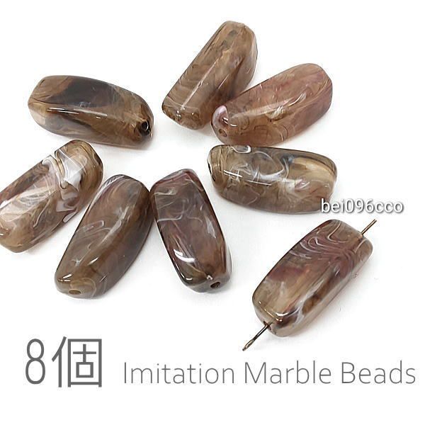 [商品名称]ビーズ アクリル 約25mm 変形 長方形 マーブル柄 貫通穴 天然石調デザイン 8個/ココア