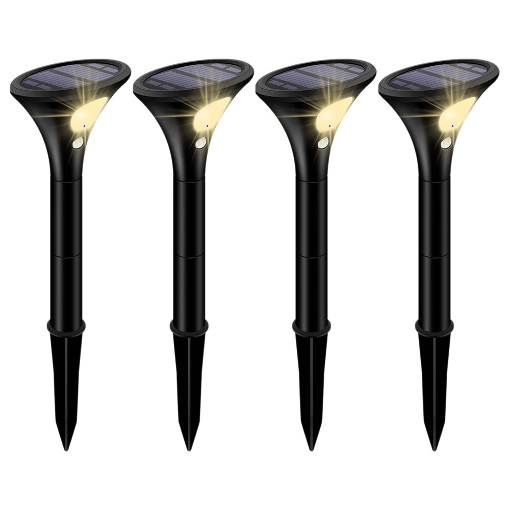 [キャッチコピー]ガーデンライト ソーラーライト 4個セット 屋外 センサーライト 2つ点灯モード 2色選べる IP65防水 埋め込み式 太陽光パネル充電 高さ調整可 自動 送料無料