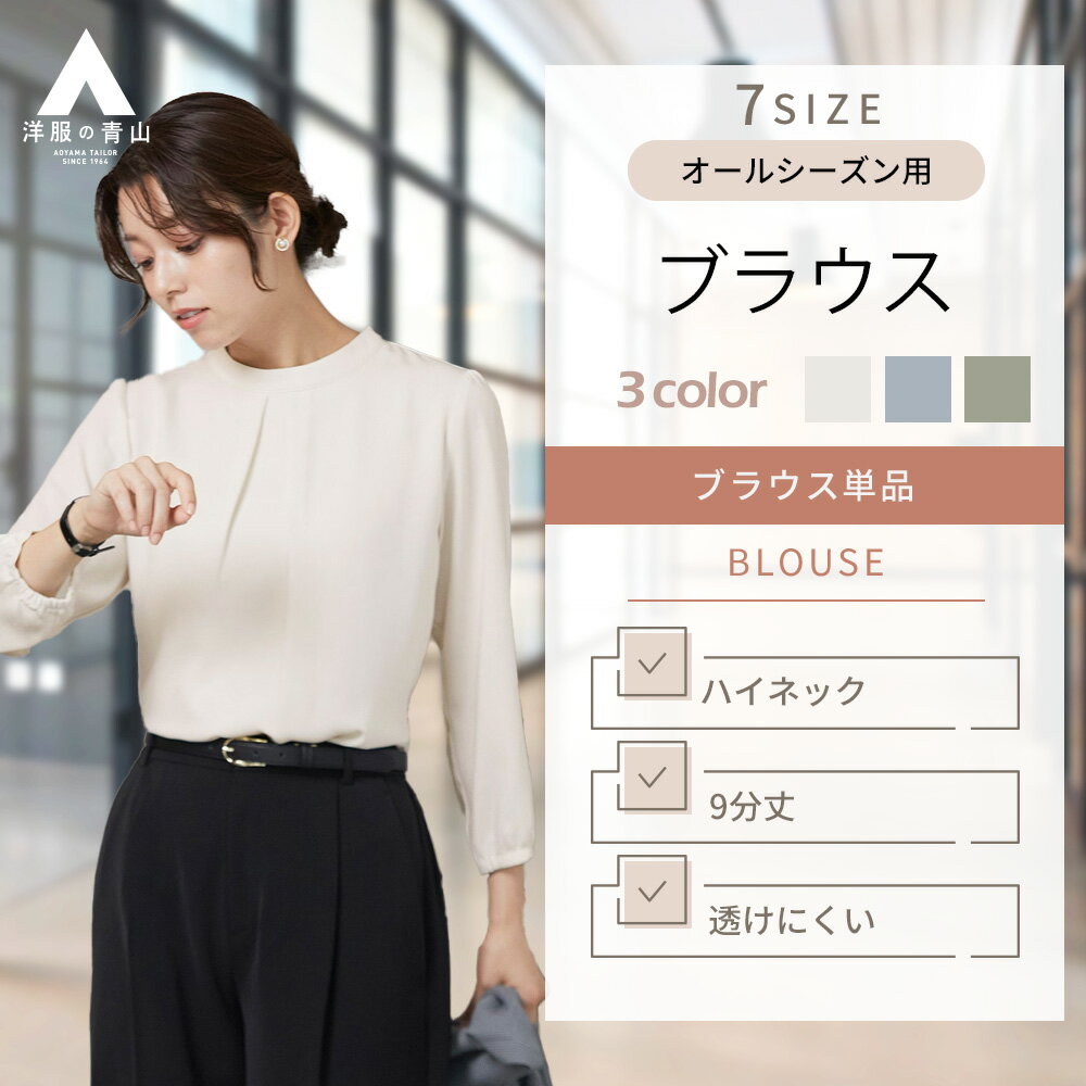 [商品名称]【洋服の青山】タック ブラウス 9分袖 ギャザー レディース ホワイト グリーン ブルー 無地 ハイネック 洗える シワになりにくい 透けない ビジネス オフィス カジュアル フォーマル トップス インナー シフォン 事務服 白 大きいサイズ きれいめ 入学式 向け 制服 xyz