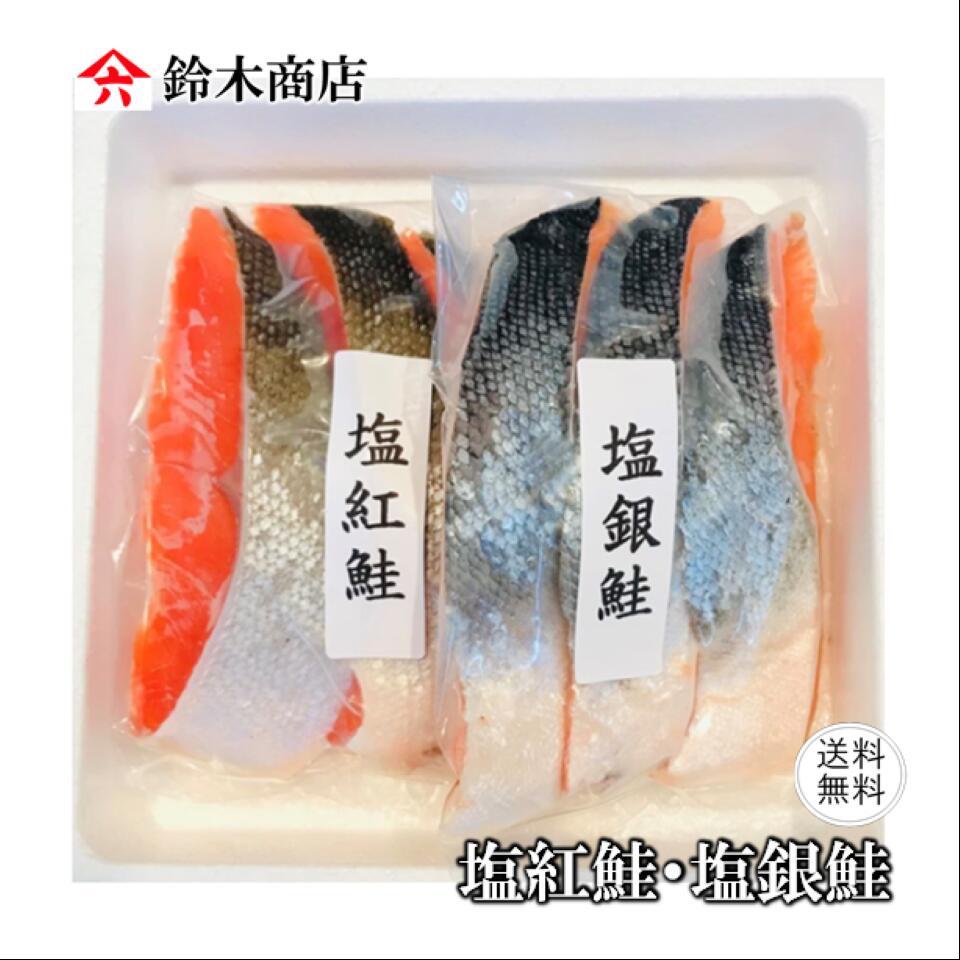 [商品説明]天然塩紅鮭と塩銀鮭を厚切りした特選詰め合わせ商品です、天然紅鮭の甘みとコク、適塩で脂たっぷりの塩銀鮭を厚切りでお届けします、日頃お世話になっている方への贈り物、お歳暮やお中元、祝い事、香典返し、自分用ご褒美に如何でしょうか ■名称 塩紅鮭、塩銀鮭 特選詰め合わせ ■内容量 塩紅鮭 3切 1切れ約120g 塩銀鮭 3切 1切れ約120g ■原材料【塩紅鮭】 紅鮭(ロシア産)、食塩、酸化防止剤(V.C) ■原材料【塩銀鮭】 銀鮭(チリ産)、食塩(一部にさけを含む) ■賞味期限 冷凍(-18℃)で50日 冷蔵で5日 ■配送方法 クール冷凍便で発送 ■販売者 株式会社 鈴木商店 新潟県新発田市大栄町1‐5‐6 ■確認事項■ 熨斗の名前入れをご希望の方、その他の熨斗の表書きをご希望の方は、商品購入後「注文内容の確認」ページの備考欄に入力して下さい、名前入れの指定がない場合は名入れ無しで発送致します。 ※送料無料商品の送料追加について 北海道と九州は別途500円、沖縄は別途1,000円追加させていただきます。